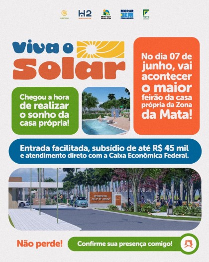 26/05/2025 - No dia 07 de junho, você é meu convidado para o Viva o Solar, o maior feirão da casa própria da Zona da Mata!